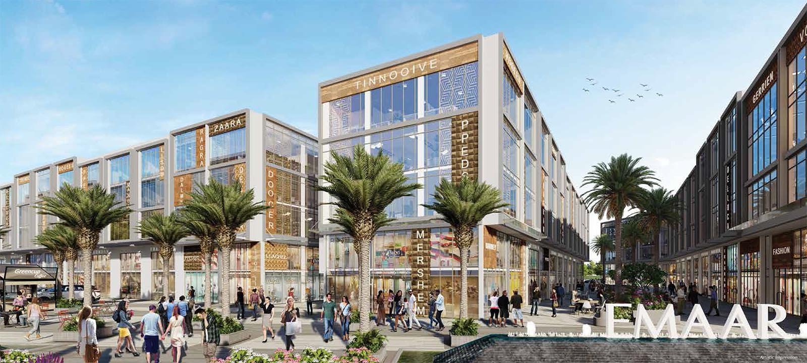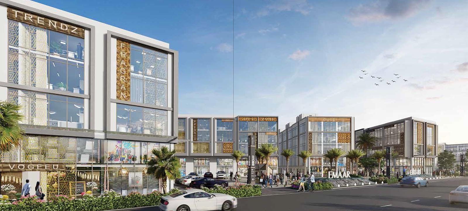 The project features wide internal boulevards, uniform façade, landscaped spaces, ample parking, water cascade entrance, and large LED screens, among other premium amenities.