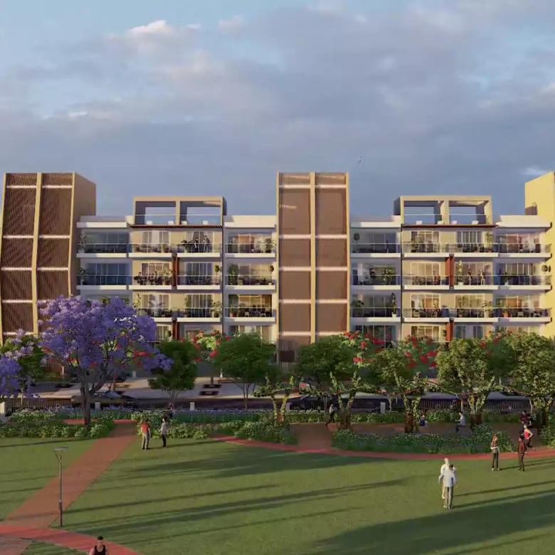The project offers low-rise independent residential floors designed for comfortable family living.