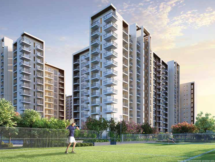 The project offers landscaped greens, clubhouse facilities, fitness areas, children’s play zones, and security.